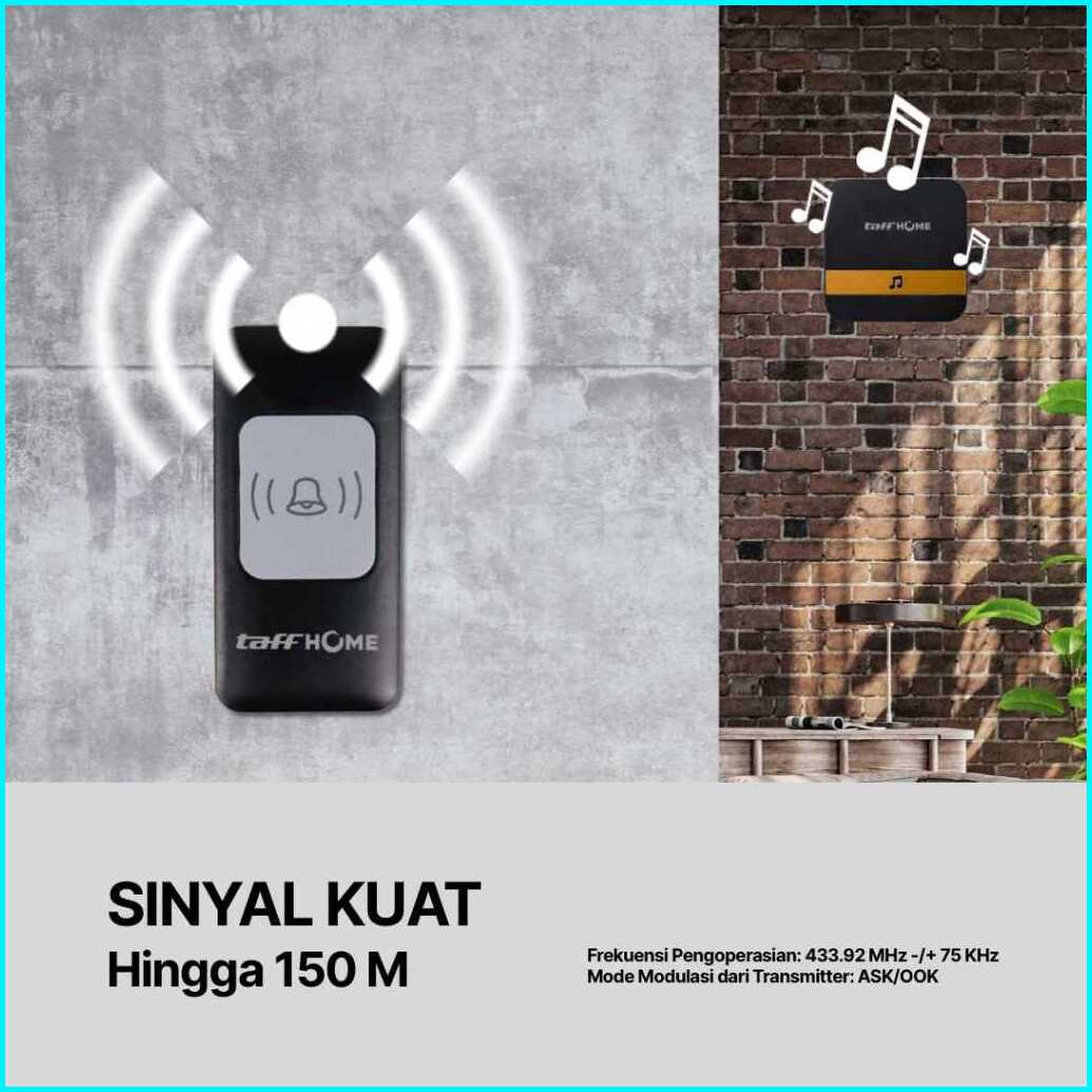 Taffhome Bell Pintu Wireless Doorbell Waterproof 52 Tunes 1 Receiver 433mhz - A9 - Black