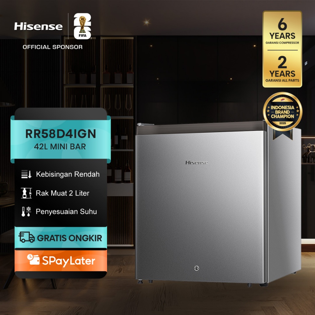 Kulkas Mini Bar Hisense Rr58D4Ign 42L Silver Low Noise Pintu Reversible