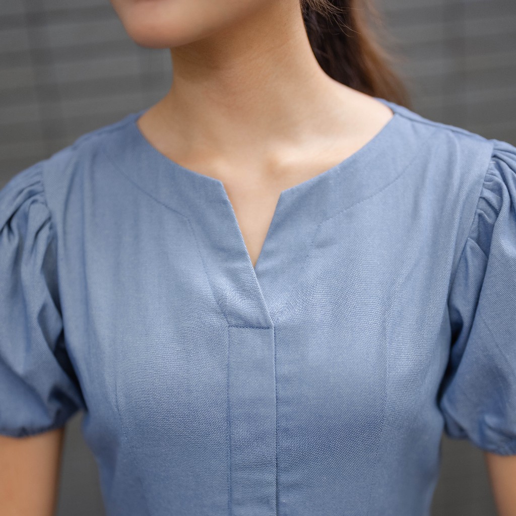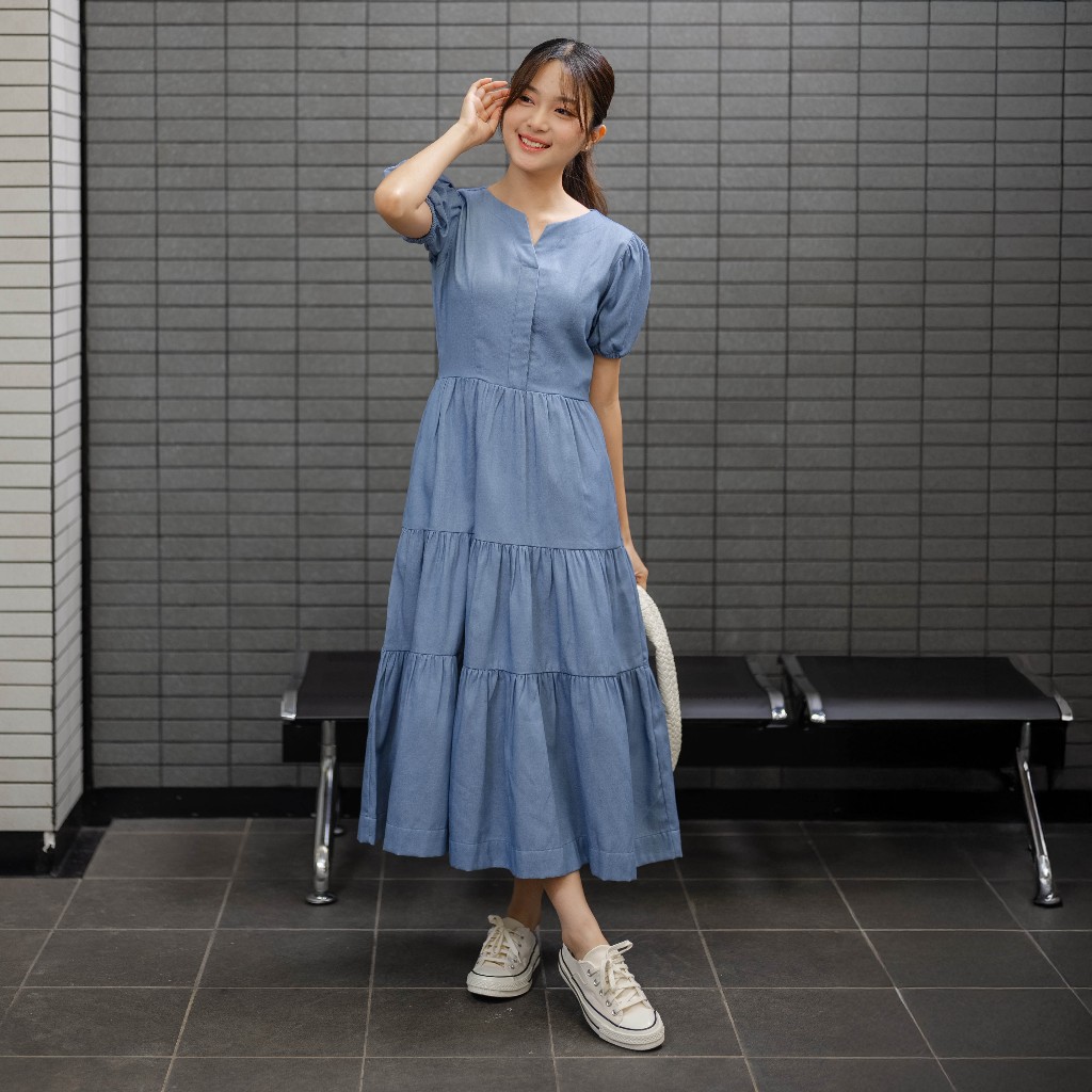 Beatrice Clothing Maxie Denim Dress - Maxi Denim Dress Lengan Pendek