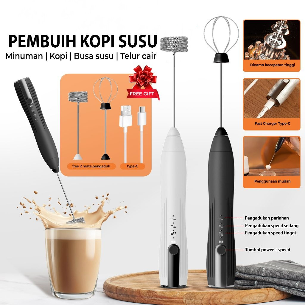 Mixer 3In1 Pembuih Susu Kopi Electric Hand Mixer Portable 4 Watt Milk Coffee
