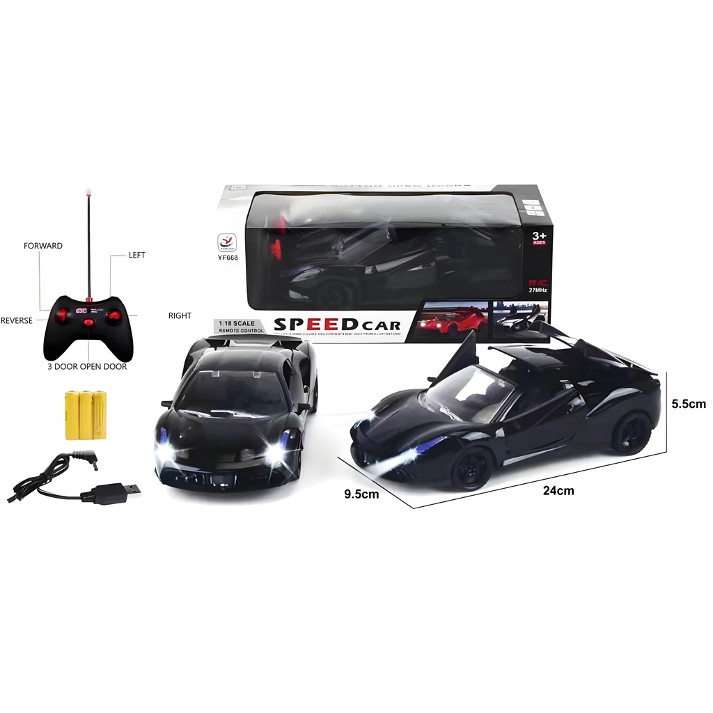 Toy Studio Mainan Anak RC Ferrari Sport Car All Black Open Door & Hood 5 Fungsi Bisa Keluar Lampu