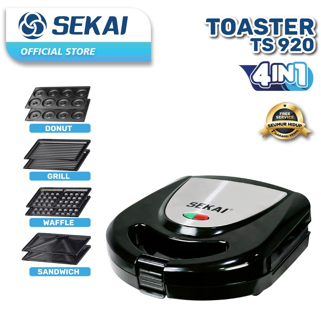 Pemanggang Roti Sekai Toaster 4 In 1 Sandwich Waffle Grill Donut Ts920