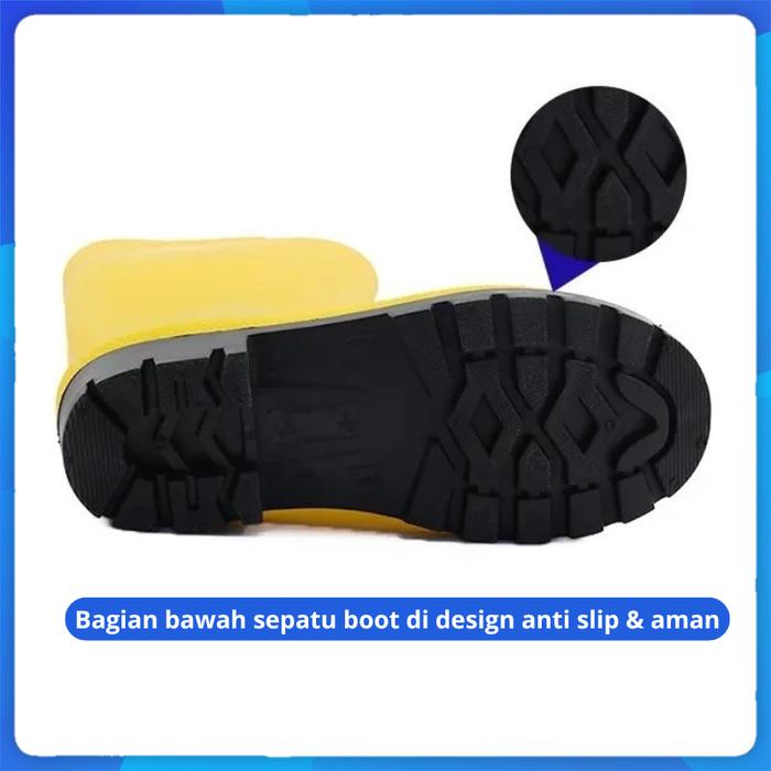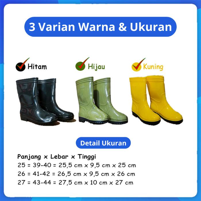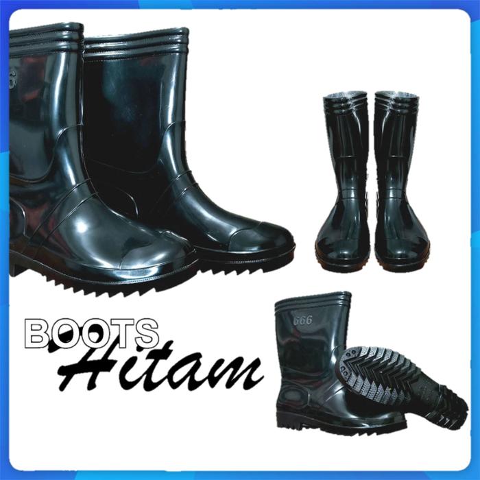 YUK BELI ! SSBO SEPATU BOOT PRIA WANITA 3 WARNA SEPATU BERKEBUN PROYEK ANTI SLIP BAHAN PVC PREMIUM - HITAM, 25 ORI