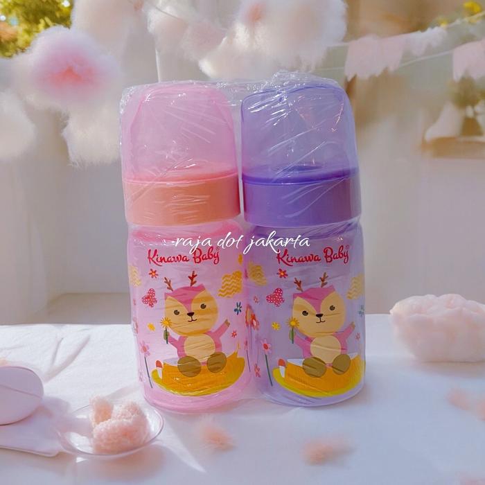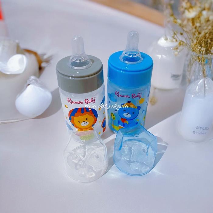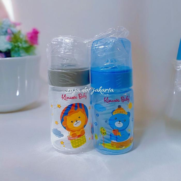 Paket 2 botol susu 125ml atau 250ml bahan bpa free bisa direbus motif lucu Bayi Biru Minum Pink Hitam - Biru+abu 125ml