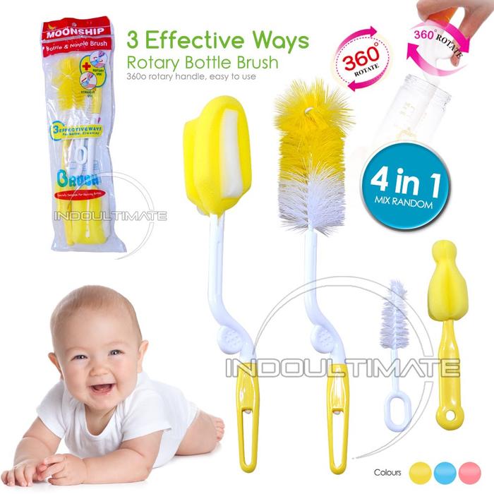 4in1 Moonship Sikat Botol Susu Bayi Pembersih botol susu dot bayi BR-06 Bottle - Yellow