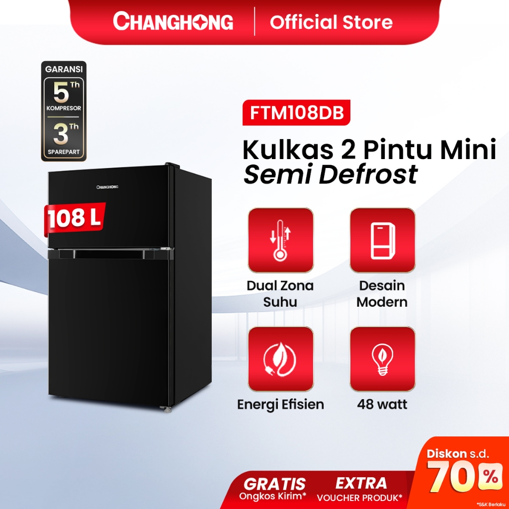 Kulkas Changhong Kulkas Changhong 2 Pintu Mini Ftm108Db 108 Liter Black Semi Defrost Pintu Fleksibel