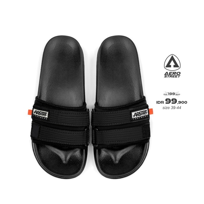 Aerostreet 39-44 Romeo Hitam Hitam - Sandal Selop Slip On B1Aaa