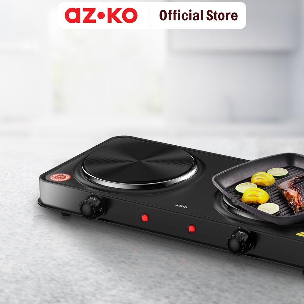 Kompor Listrik Azko Kris Double 1000W Electric Stove 2 Tungku Perlengkapan Dapur Praktis