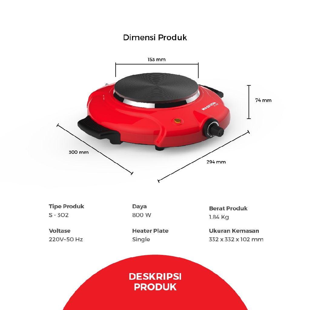 Kompor Listrik Maspion Electric Stove 1 Tungku S-302 Praktis Hemat Energi Rumah Tangga