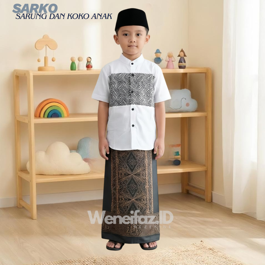 Sarung Anak (Langsung kirim) paket lengkat SARKOCI sarung koko peci anak usia 1-11 tahun size M L XL XXL