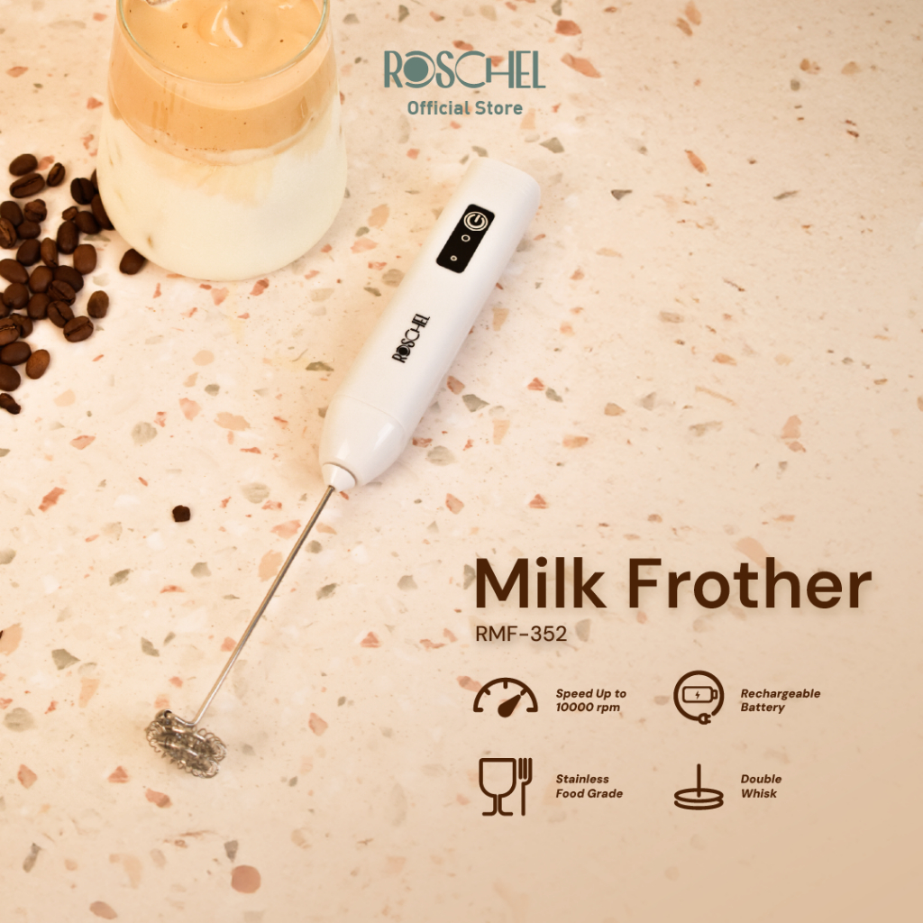 Roschel Milk Frother Portable 3 Speed Rmf-352 Pengaduk Telur Dan Susu Praktis Rechargeable
