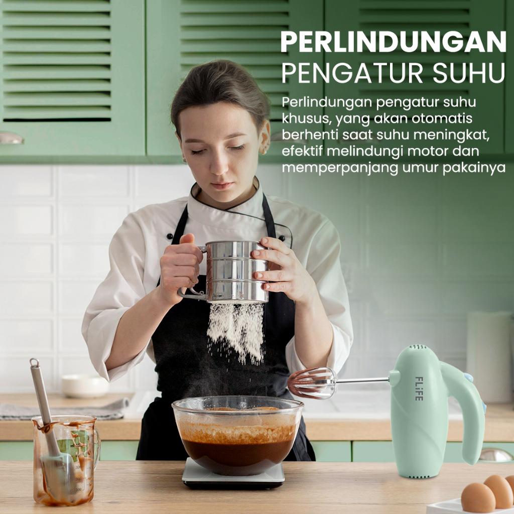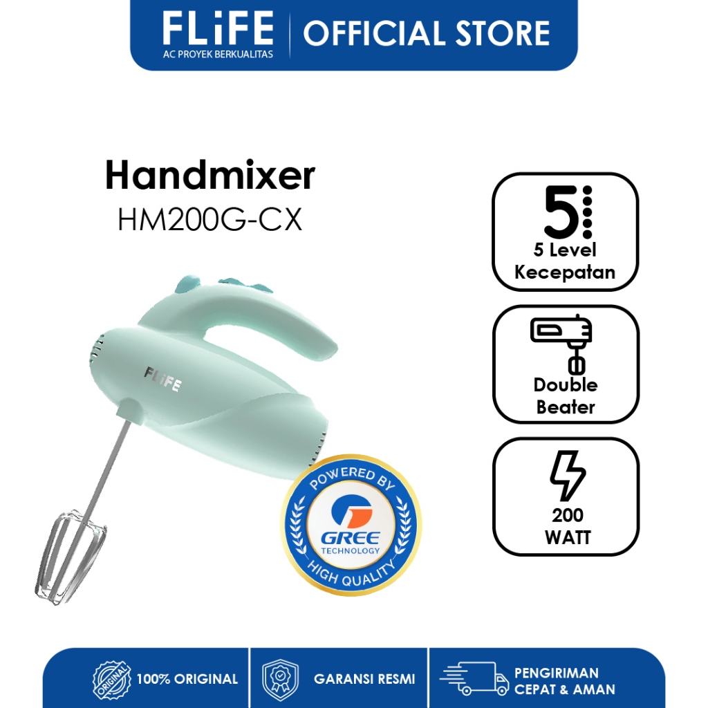 Mixer Flife Hand Mixer 5 Level Kecepatan Double Beater Pengatur Suhu Model Hm200G-Cx