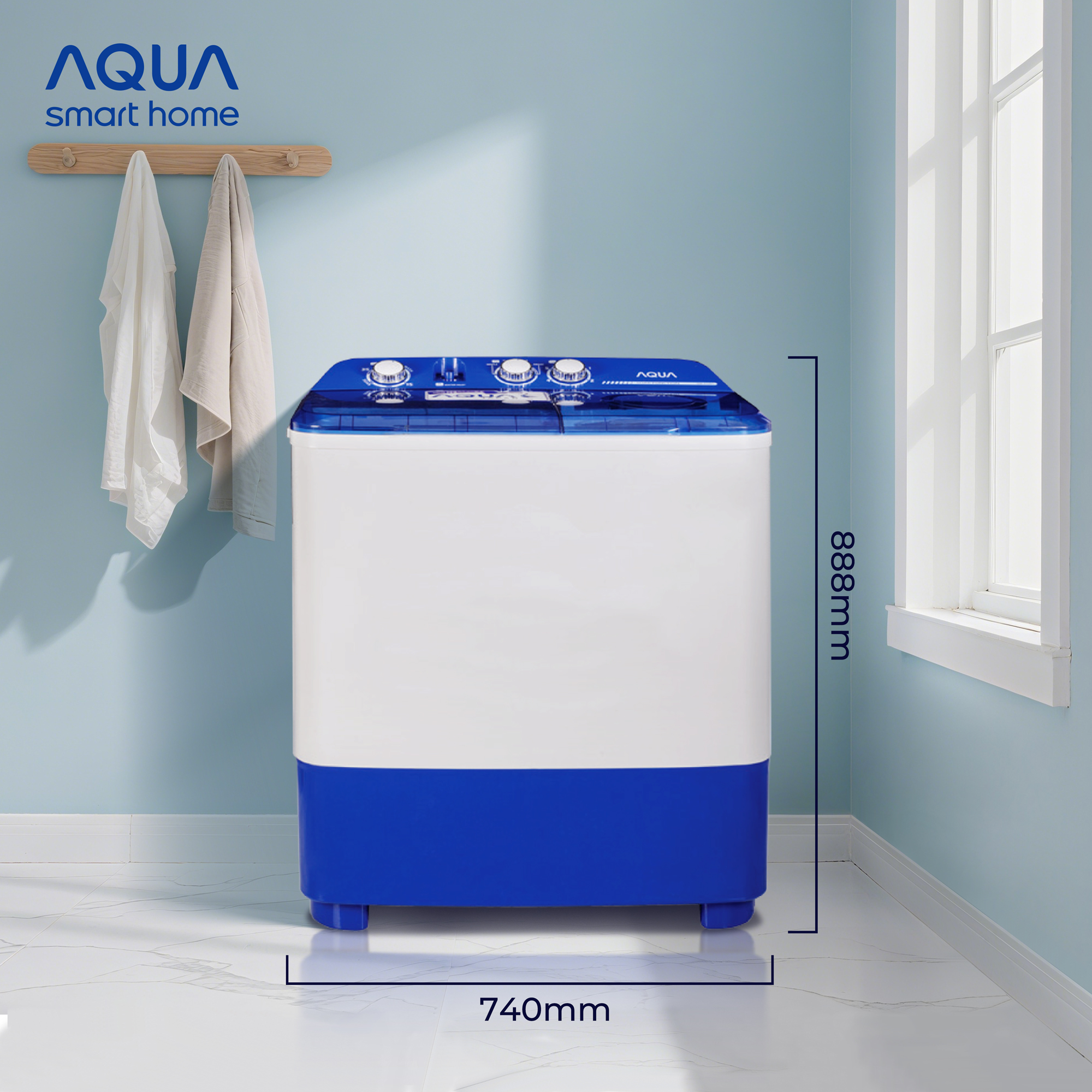 Mesin Cuci Aqua Elektronik Qw-770Xt Twin Tub Kapasitas 7 Kg Unit Only