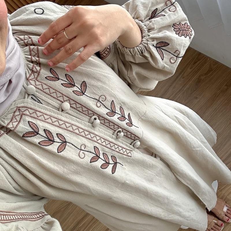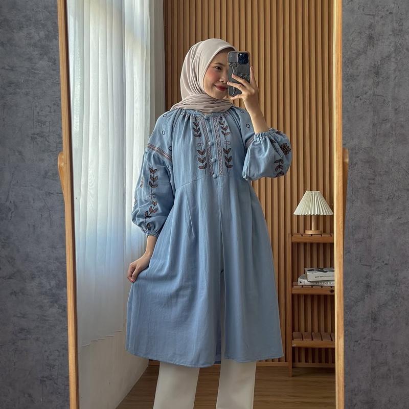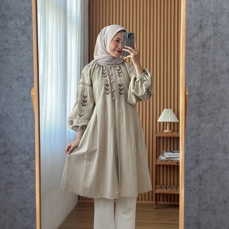 Fitri Top Tunik Linen Bordir Atasan Katun Style Korea Blouse wanita Premium