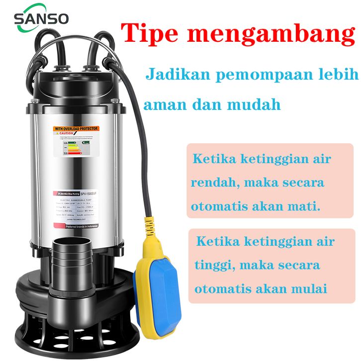 TERLARIS Pompa Celup Air Kotor Otomatis 200W 1.5inch Stainless Steel Sewage Pump Mesin Murah SANSO inomnl