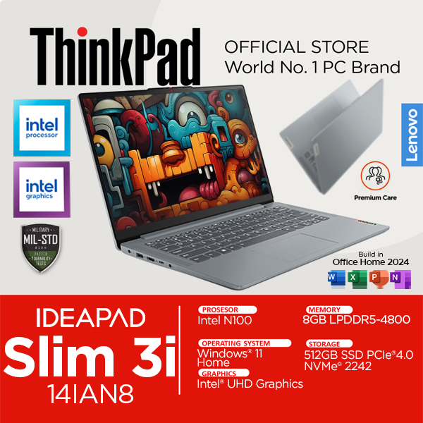 Laptop Lenovo Ideapad Laptop Lenovo Ideapad Slim 3I Intel N100 8Gb 512Gb Ssd 14 Inch Fhd 14Ian8
