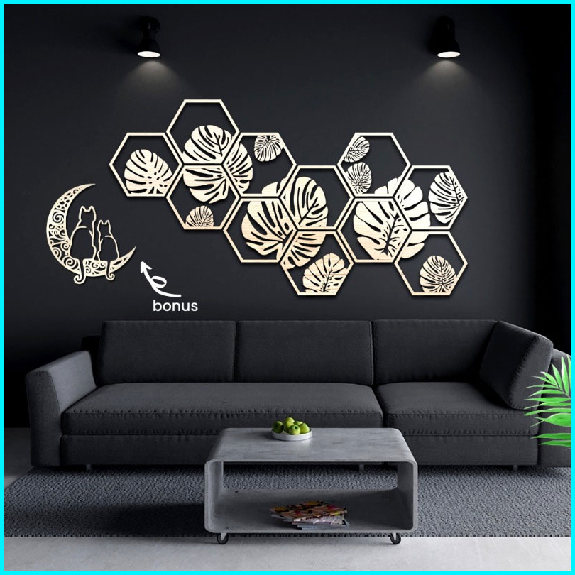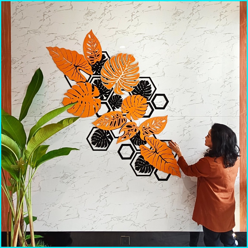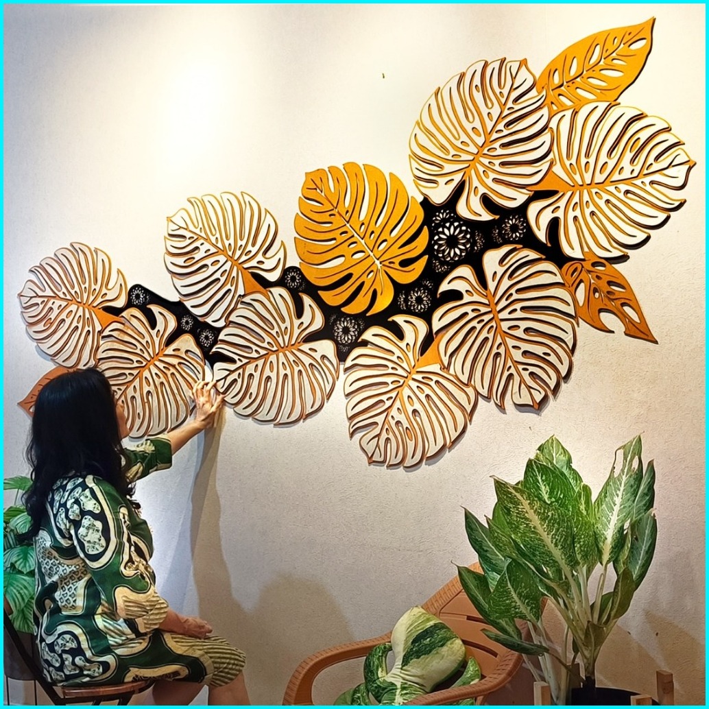 Set Hiasan Dinding Ruang Tamu Dekorasi Motif Daun Janda Bolong Pajangan Kamar Tidur