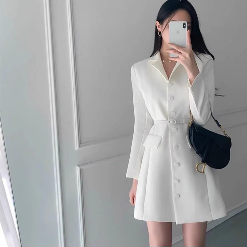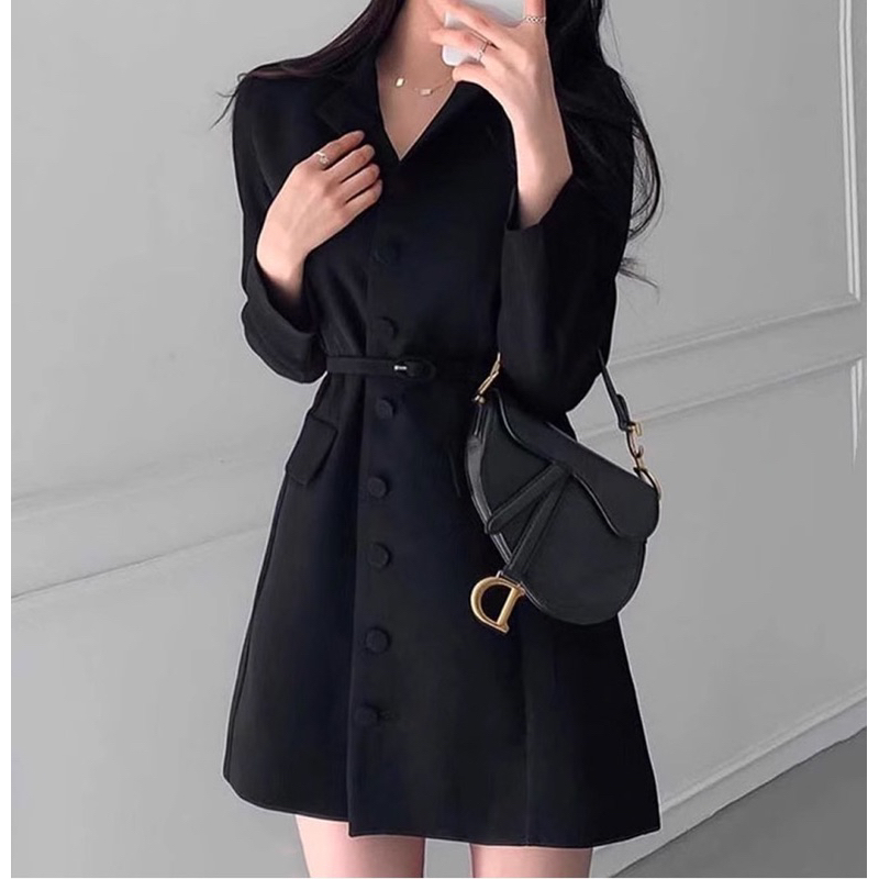 D1297 PRISSY KOREAN STYLE VINTAGE MINI DRESS POLOS FREE BELT KANCING SIMPLE RETRO CASUAL FORMAL LOOM