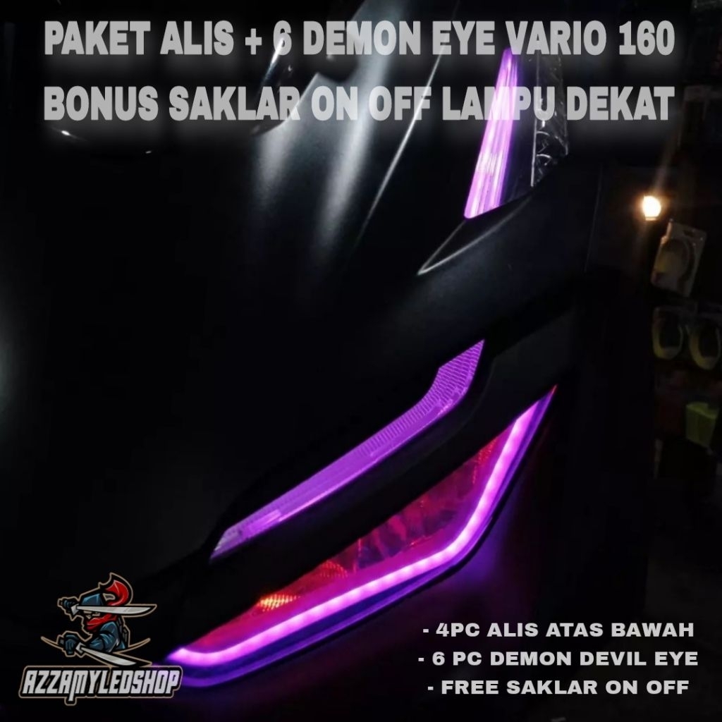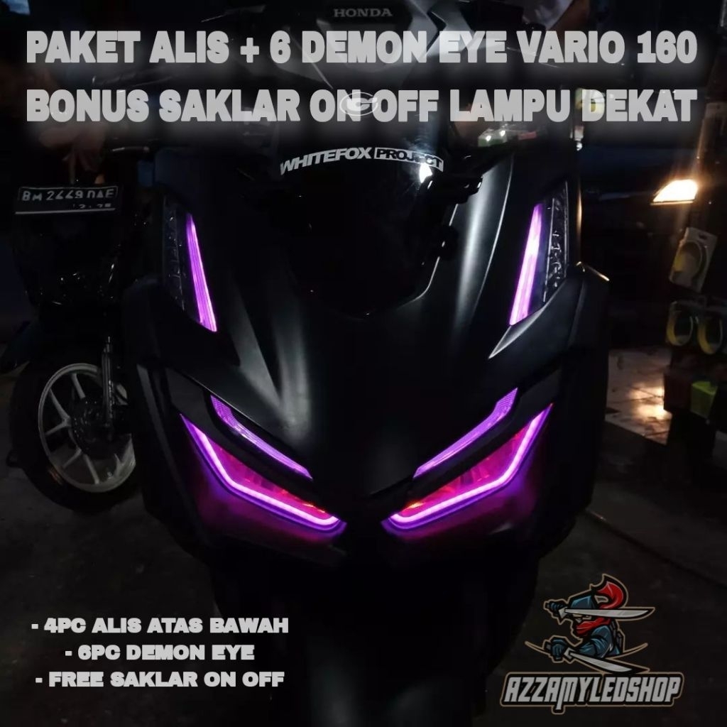 Paket lampu alis vario 160 alis atas bawah + 6 pc demon devil eye free saklar bracket spion no bintik super terang berku