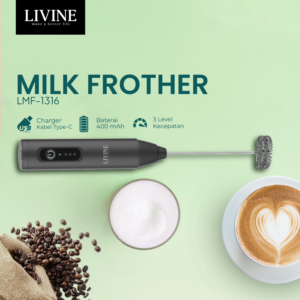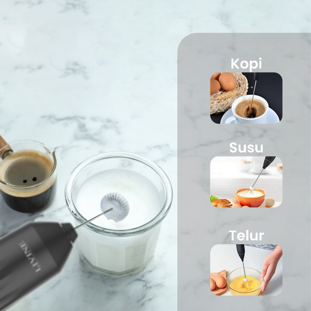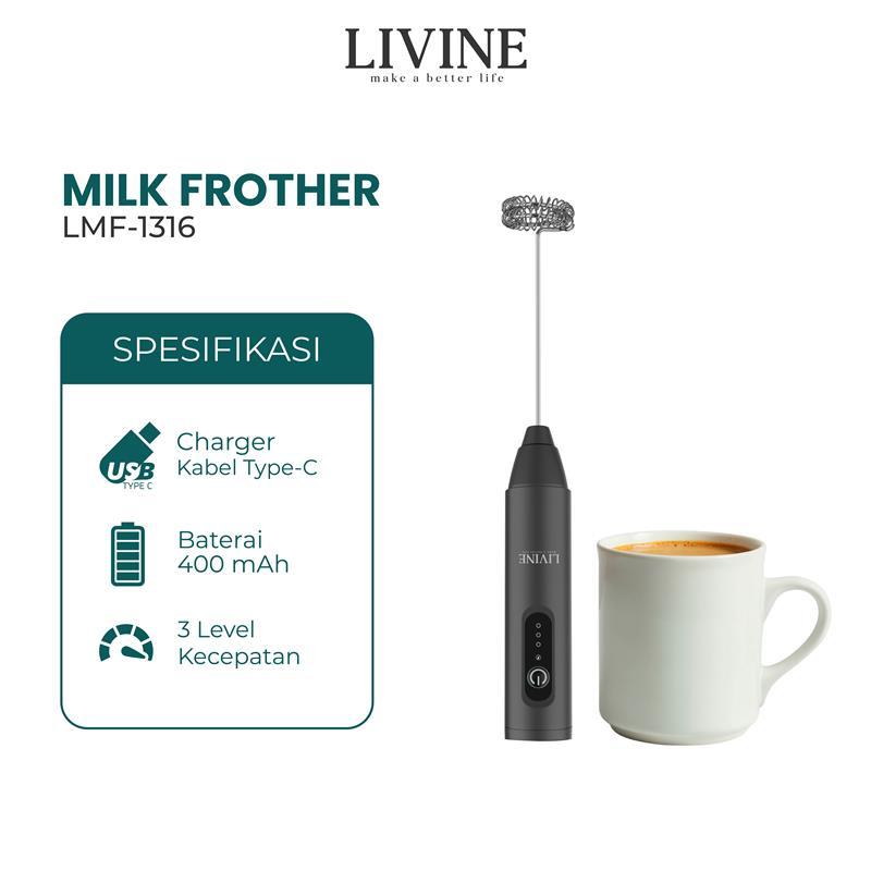 Milk Frother Livine Hand Mixer Pengaduk Kopi Telur Portable Lmf-1316 B