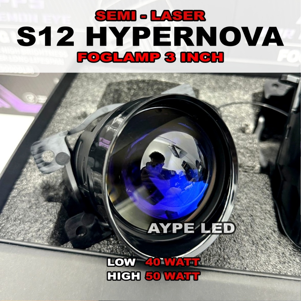 Foglamp Biled 3 inch Bluelens HYPERNOVA S12 Laser 3 Warna Cahaya Foglamp Mobil 80 Watt Universal
