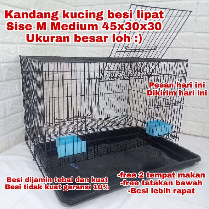 Kandang Kucing Jumbo Alumunium Lipat 50X30X30 Free 2Tempat Makan