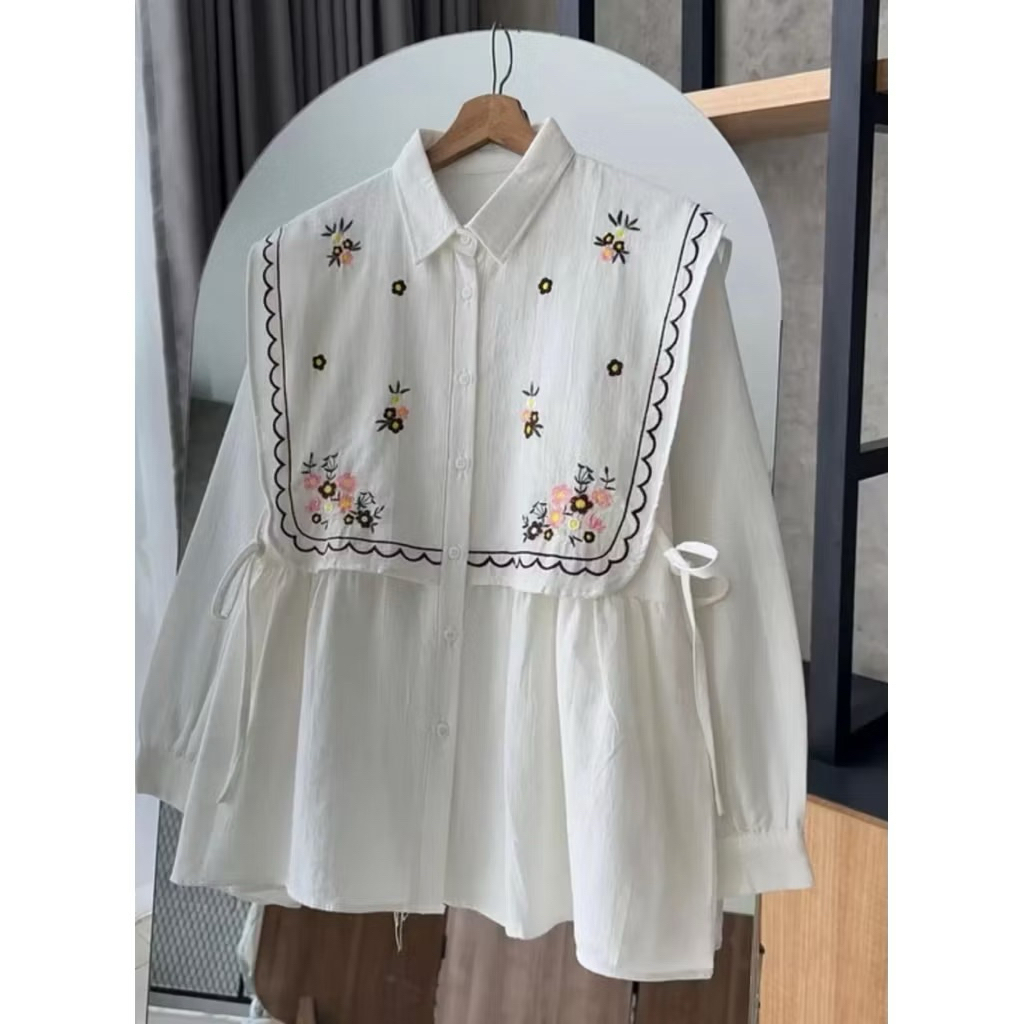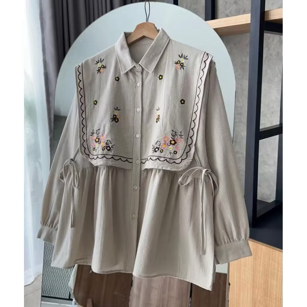 Narika Shirt | Kemeja Vest Ikat Bordir Linen Premium Atasan Wanita Panjang Terbaru