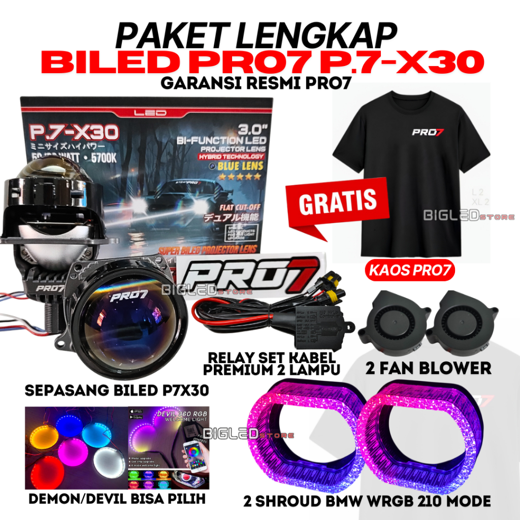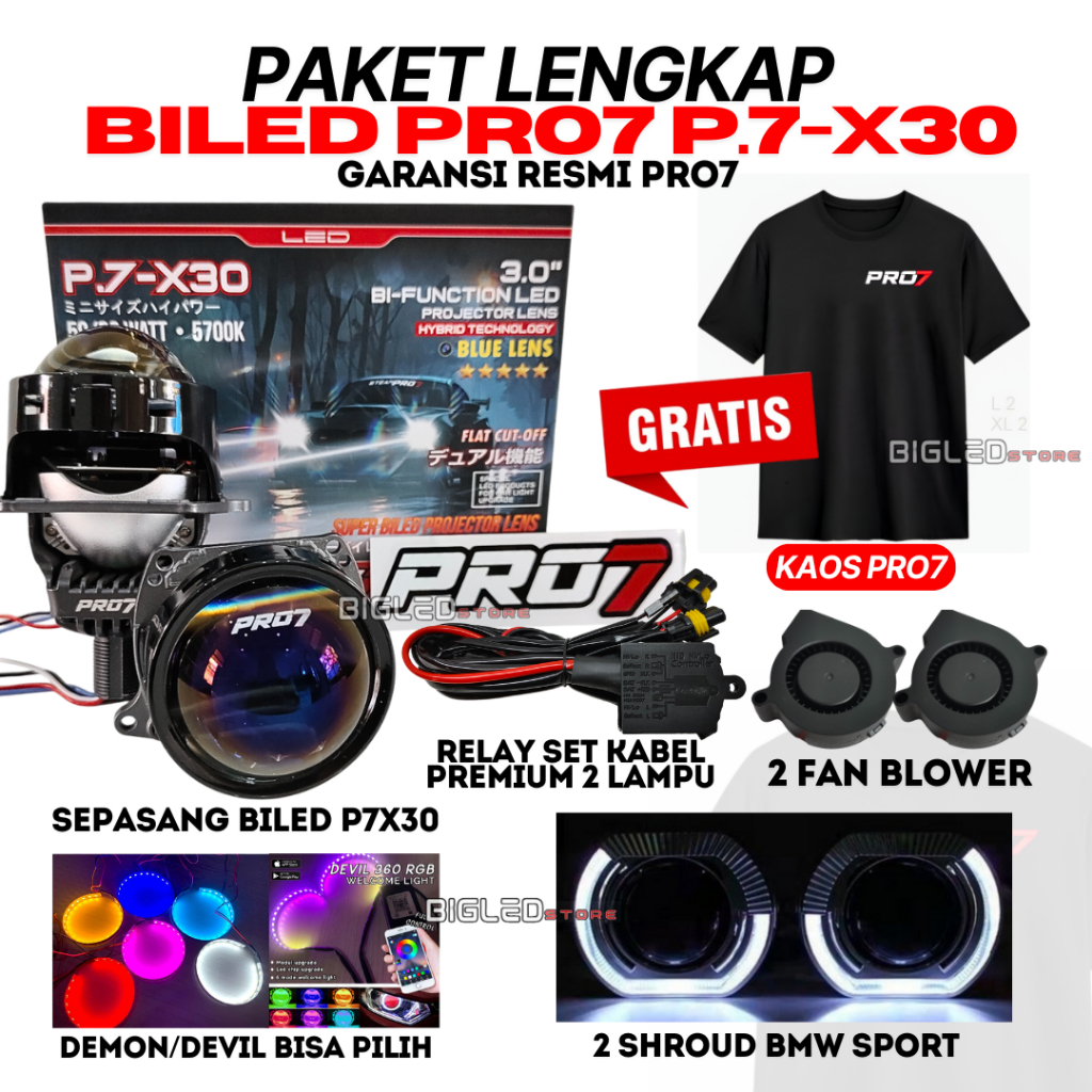 PAKET HEMAT Lampu Biled Projector Headlamp Pro7 PRO 7 P7X30 P.7-X30 P7-X30 P.7X30 P7 X30 50 60W 3 inch 5700K LENGKAP