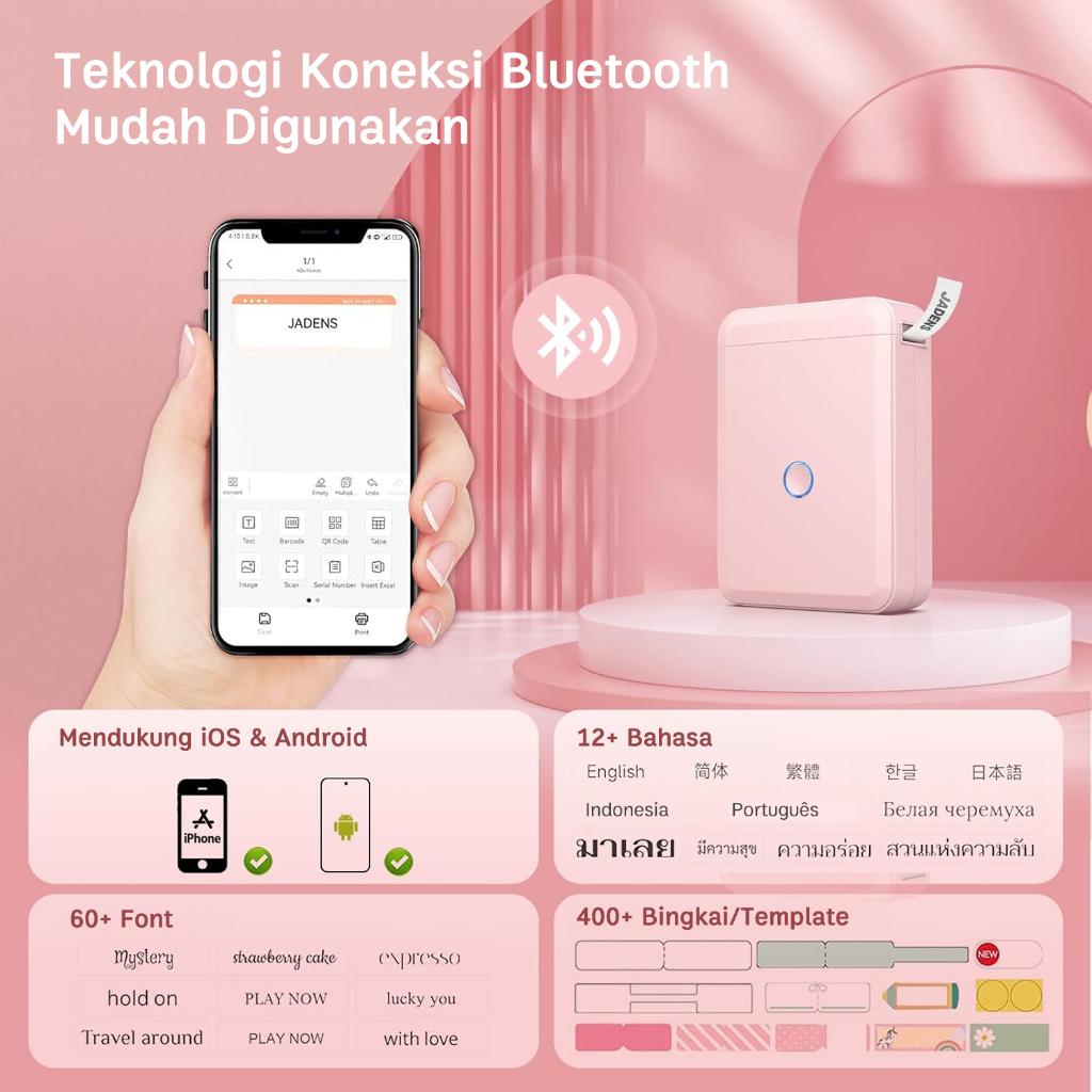 Niimbot D110 Printer Label Nirkabel Dilengkapi Label Stiker Harga/Nama