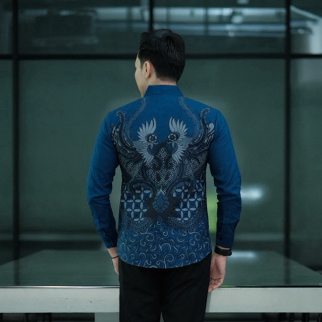 NISKALA BIRU NAVY Kemeja batik pria lengan panjang furing full katun Slimfit