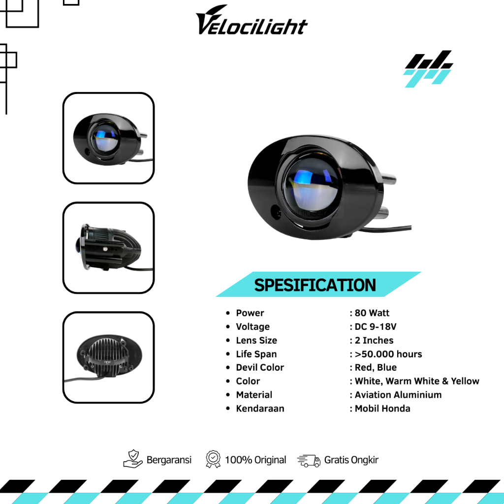 Foglamp Biled Honda 2 Inch 80W Projector Laser Cut Off 3 Warna Devil Super Terang PF2 LUXIMOS NINE