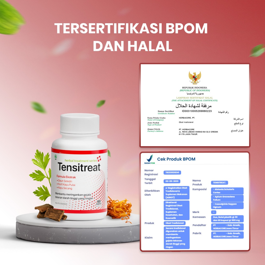 Tensitreat 60 Kapsul - Obat Hipertensi Herbal - Membantu Meringankan Gejala Tekanan Darah Tinggi - Herb