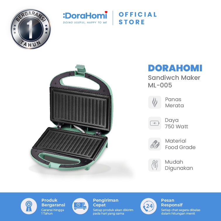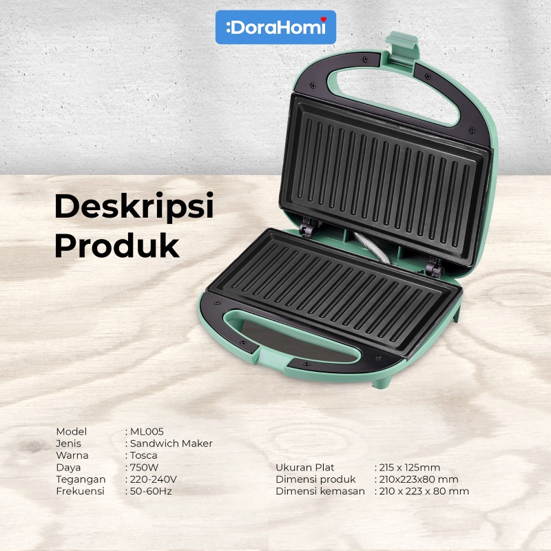 Sandwich Maker Toaster Dorahomi Alat Pemanggang Roti Bakar Low Watt 750W Anti Lengket