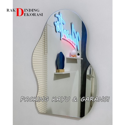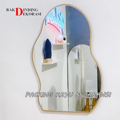 Cermin Aesthetic Scandinavian Vintage Lengkuk Empat Led Polos Tempel Gantung Wastafel Make Up Kamar Mandi Ukuran 60x40cm