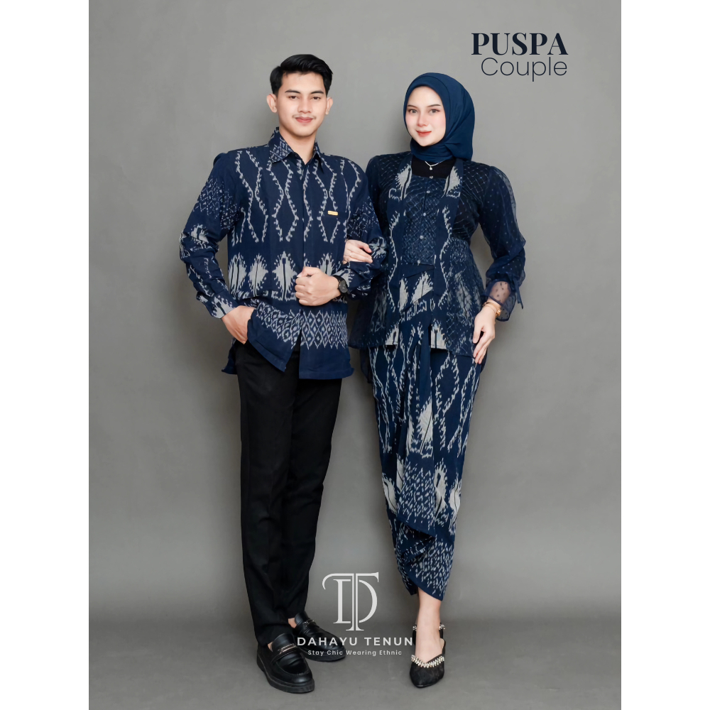 DAHAYU - Baju Kebaya Kutubaru Brukat Lamaran Set Couple Pasangan Tunangan Kondangan Hijab Navy Mewah