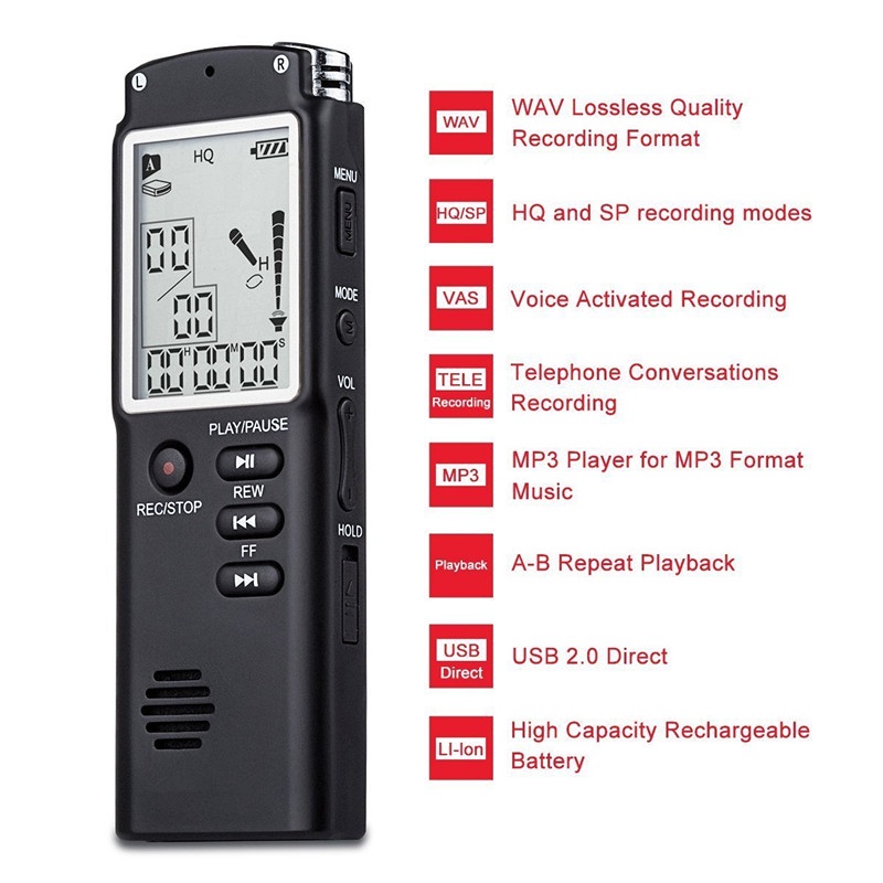 [PROMO] ALAT PEREKAM Voice Recorder Digital Kapasitas 8 GB / Perekam Suara Digital Voice Recorder 8GB - Black