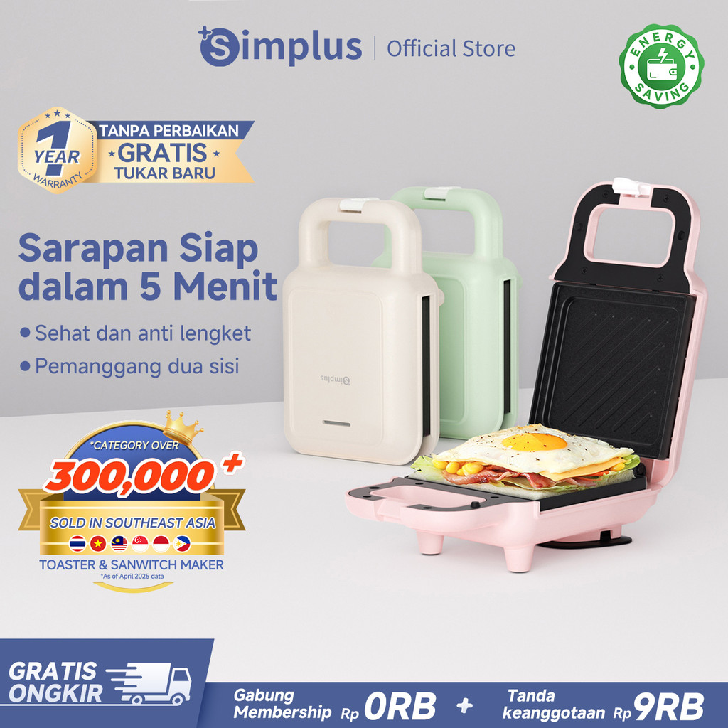 Sandwich Maker Simplus Pemanggang Roti Toaster Anti Lengket Low Watt Bergaransi