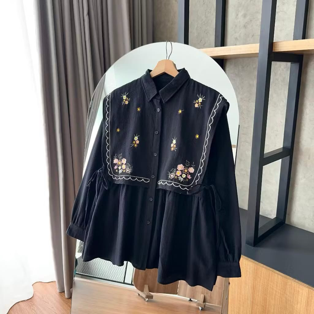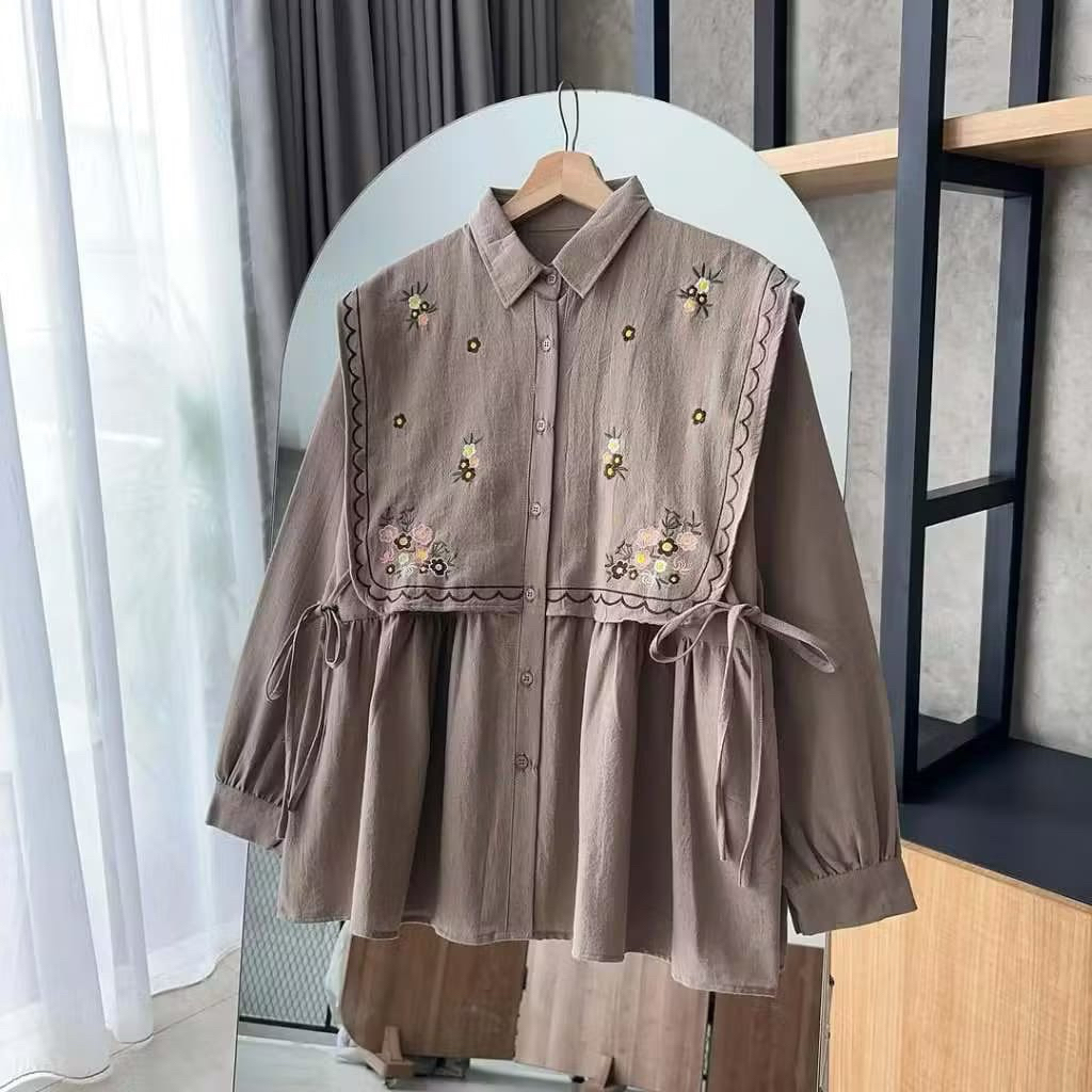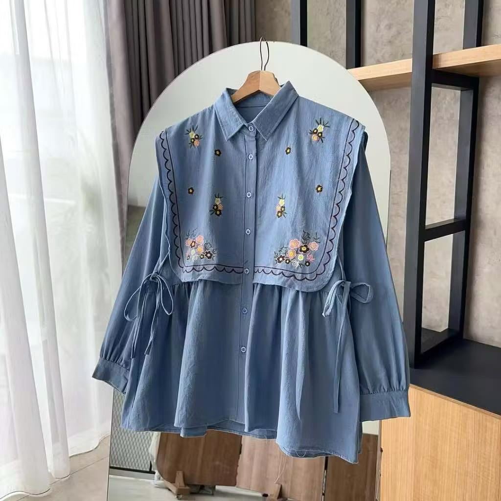 Lauren Blouse - kemeja bordir semi vest bahan linen. atasan wanita trendi