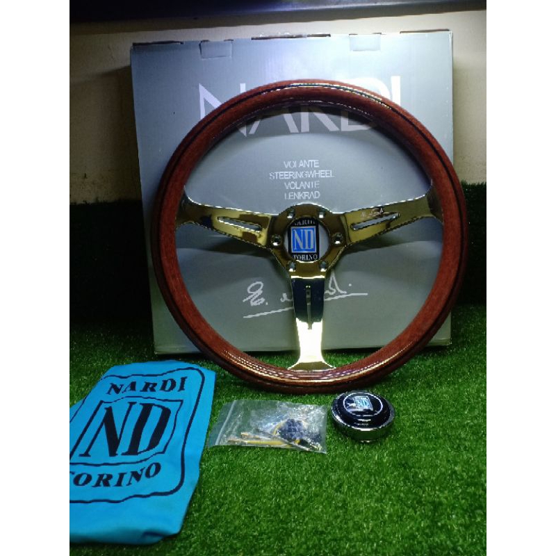 Setir / Stir Mobil Kayu Klasik Nardi Torino 14" Inch Silver Kualitas Premium Good Quality