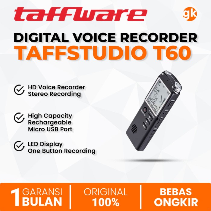 TAFFWARE Digital Voice Recorder Taffstudio T60 Perekam Suara Stereo 8GB Rechargeable USB Micro Support Jack 3.5mm