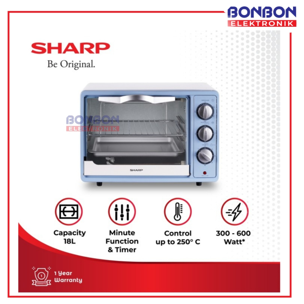 Oven Sharp Listrik 18 Liter Eo-18Bl Blue Electric Toast Grill Bake Roast