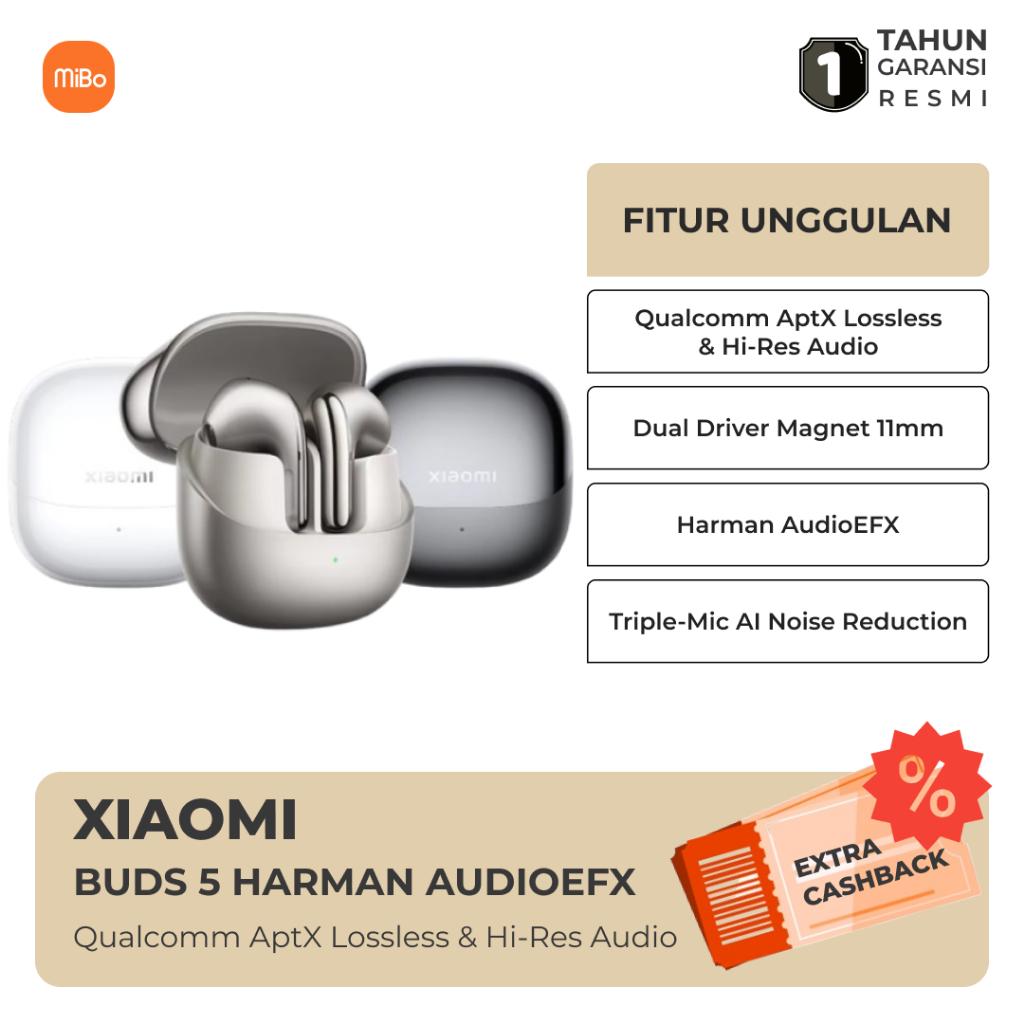 Xiaomi Buds 5 TWS Qualcomm aptX Hi-Res Audio Harman Audio EFX Triple-mic AI Garansi Resmi