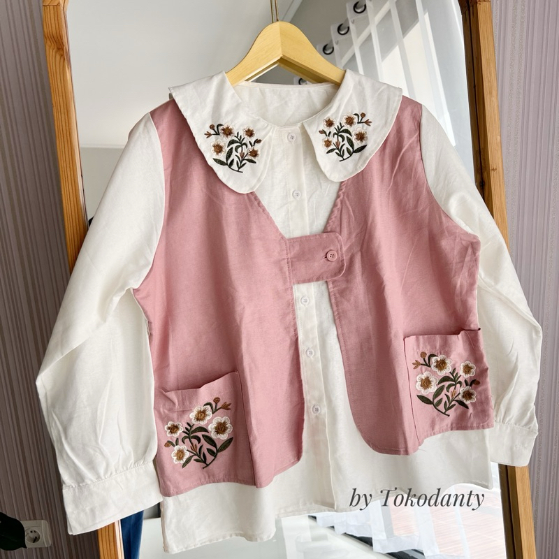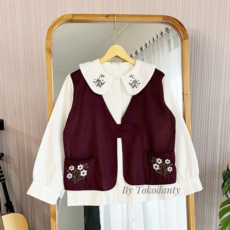 Megumi Shirt - Atasan Wanita - Kemeja Bordir - Rompi Cantik - Katun Linen - Korean Style