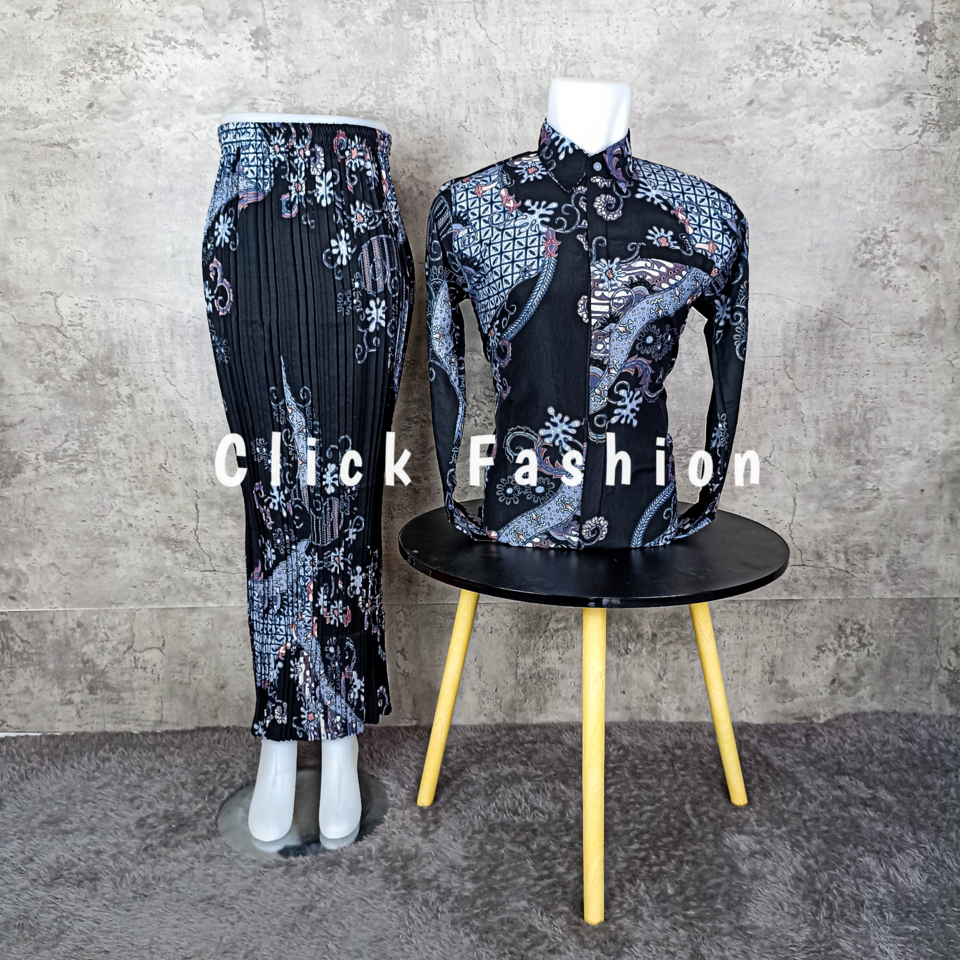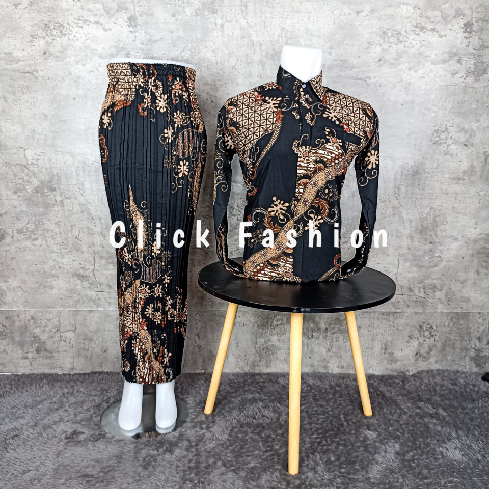 CLICK FASHION-BATIK COUPLE PASANGAN DAN ROK PLISKET MOTIF TERBARU SERUNI