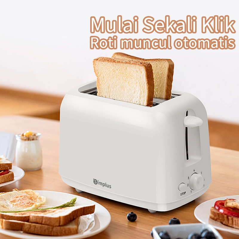 Toaster Simplus Pemanggang Roti Elektrik Otomatis Sandwich Low Watt 7 Tingkat Suhu 2 Slot