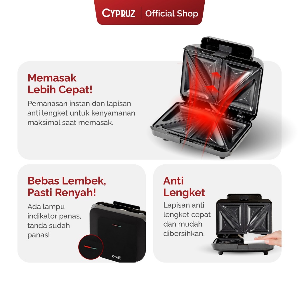 Sandwich Maker Cypruz Pemanggang Roti Anti Lengket Low Watt