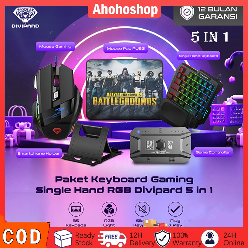 5 In 1 Paket Keyboard Gaming Dan Mouse/Single Hand Gaming Rgb Keyboard Dan Mouse Pubg Keyboard Gamin Usb 5.0 Converter W