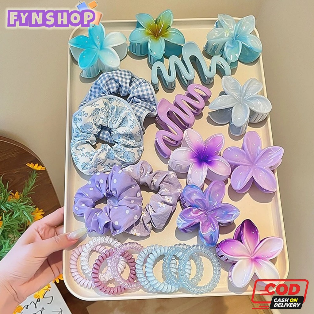 Fynshop ♛ Set Aksesoris Rambut Isi 11 Jedai Kamboja Ikat Rambut Scrunchie Fashion Wanita AC402