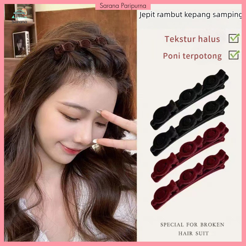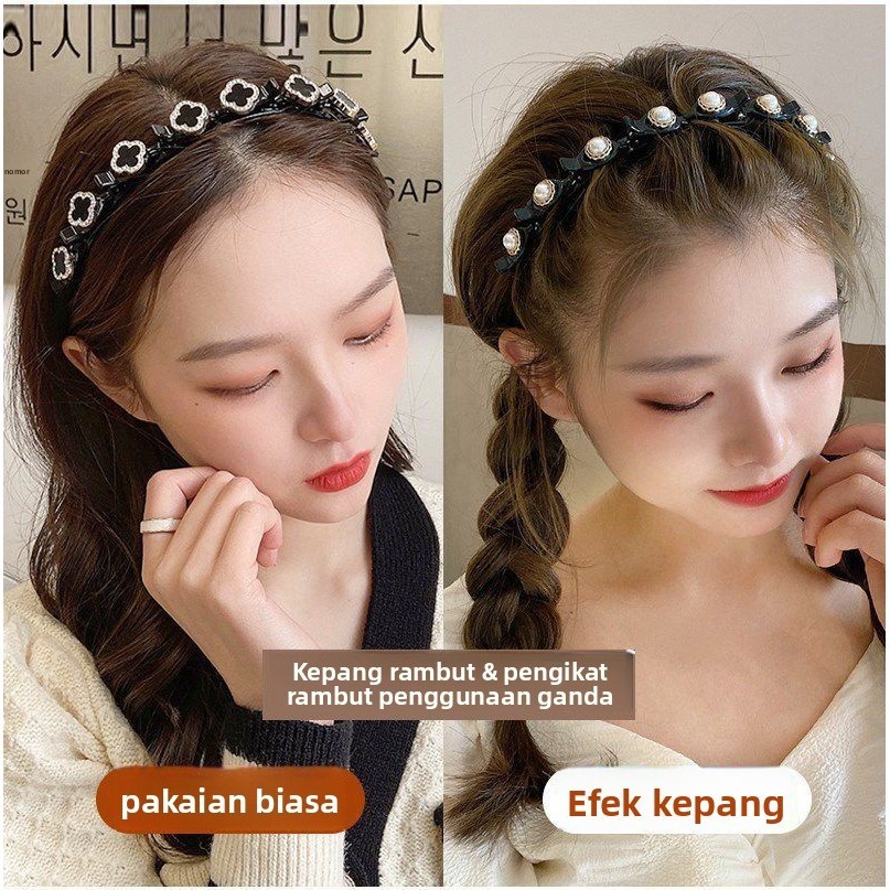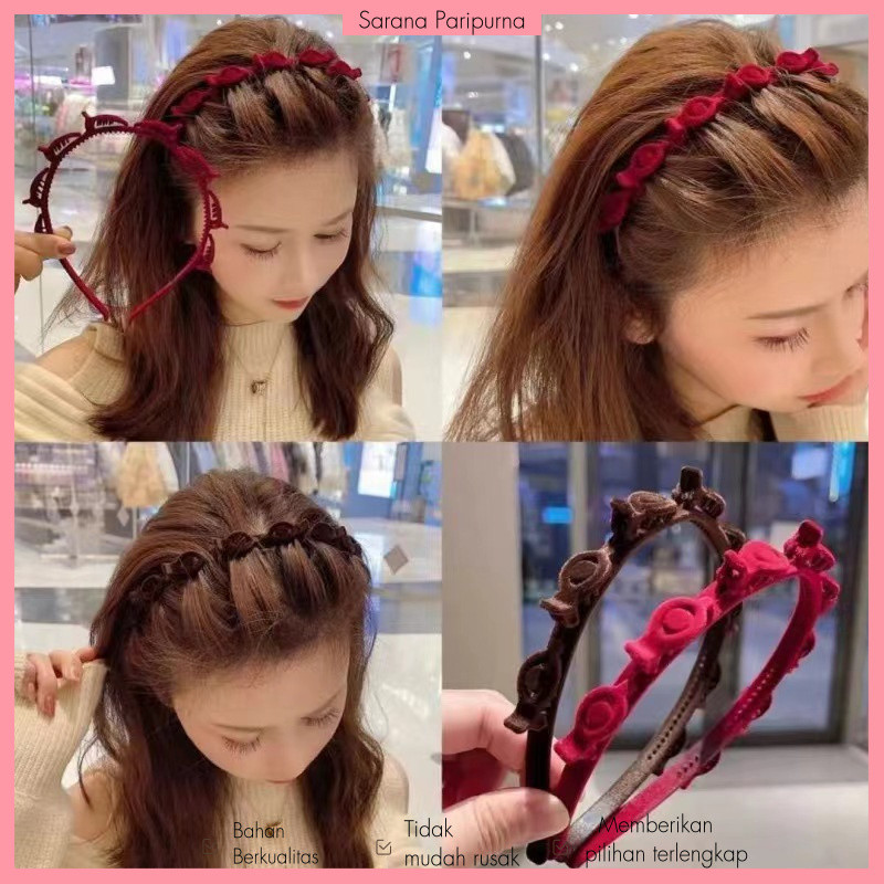 Headband Bando Beludru 2in1 Premium - Aksesoris Rambut Korea, Hairband + Jepit Rambut Wanita, Elegan & Nyaman Dipakai S