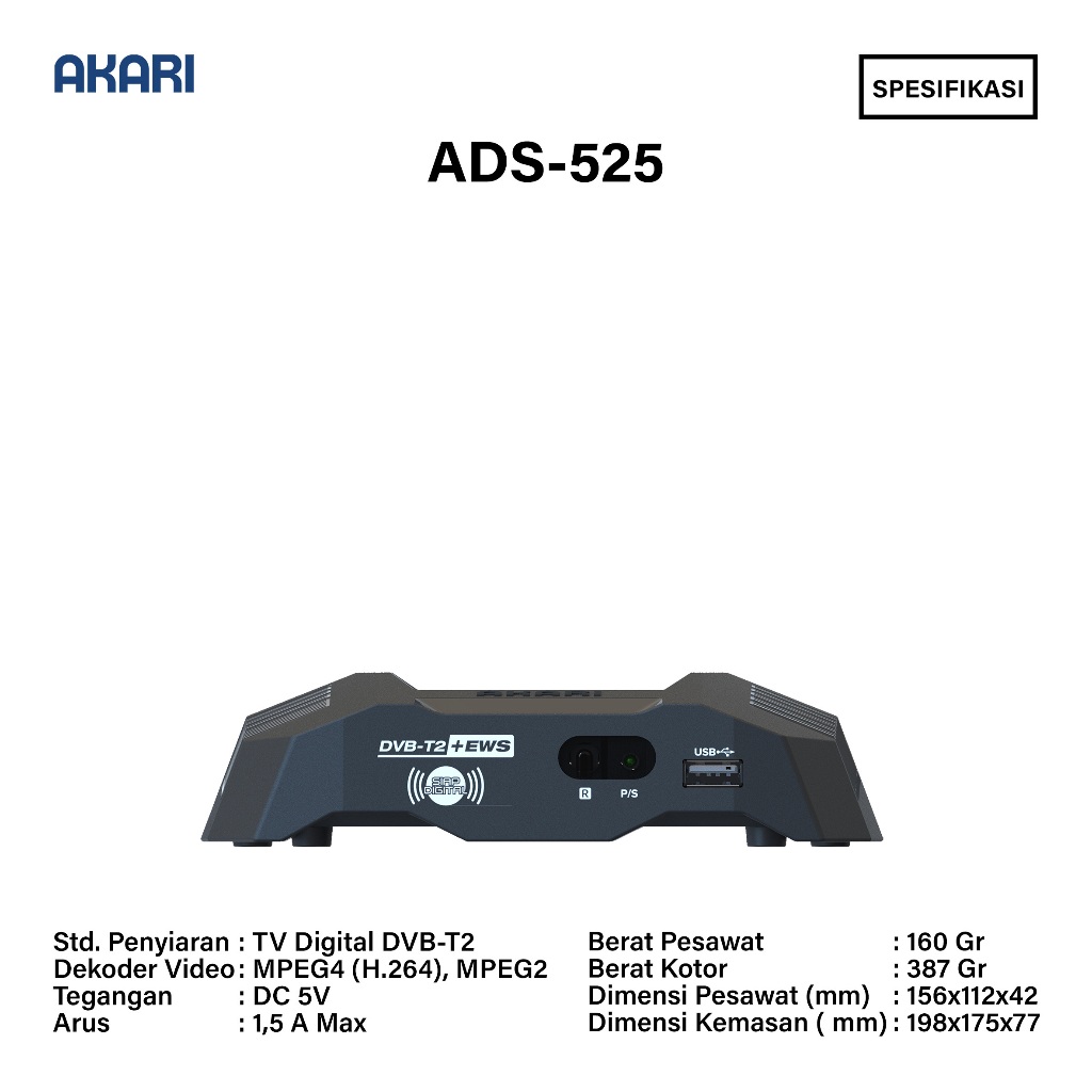 Set Top Box Akari Dvbt-2 Ads-525 Receiver Tv Digital Dvb-T2 Full Hd